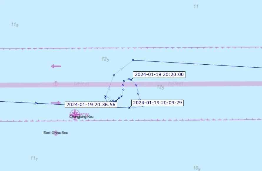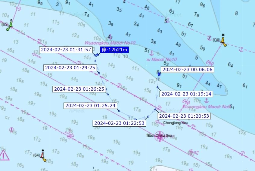 2024年1月19日2003时,北槽8号灯浮出口船“NCC”轮报告左锚及10节锚链滑落水中。吴淞交管中心立即启动预案,对周围船舶进行交通组织。2039时,该轮左锚及锚链绞起收妥。吴淞交管中心安排该轮前往长江口3号锚地抛锚待查。