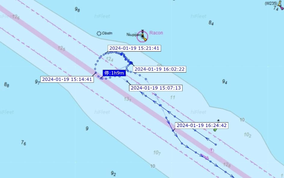 2024年1月19日1510时,北槽15号灯浮进口船“P3”轮报告右锚及7节锚链滑落水中,导致突然大角度驶向航道外。吴淞交管中心立即启动预案,对周围船舶进行交通组织,并协调附近拖轮前往协助。1615时,该轮右锚及锚链绞起收妥。吴淞交管中心安排该轮前往长江口1号锚地抛锚待查。