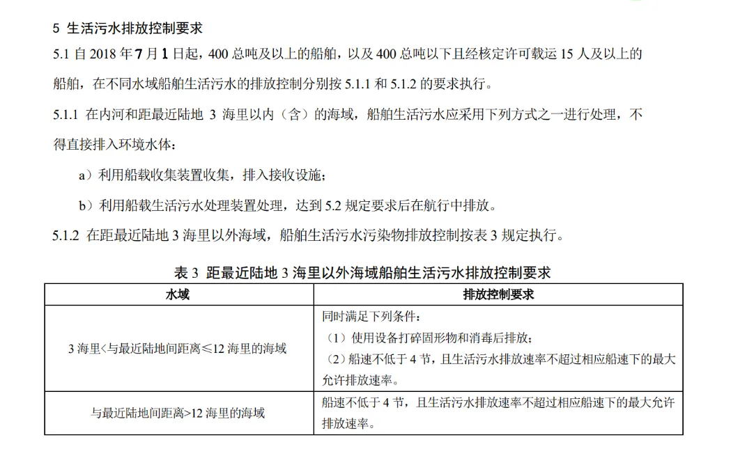 3.《船舶水污染物排放控制标准》(GB 3552-2018)5.1